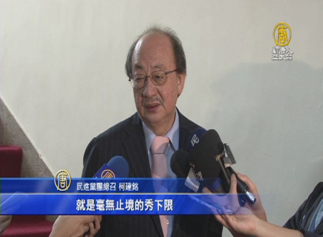 【新唐人亞太台 2017 年 05 月 02 日訊】立法院明天(3日)重審前瞻基礎建設條例,國民黨立委今天(2日)一早佔據議場主席台,院長蘇嘉全雖然召集朝野協商,但國民黨團沒有出席,民進黨團總召柯建銘怒批國民黨在「秀下限」,只想製造衝突。