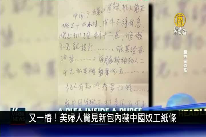又一樁!美婦人驚見新包內藏中國奴工紙條|中國一分鐘