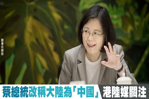 蔡總統改稱大陸為「中國」 港陸媒關注