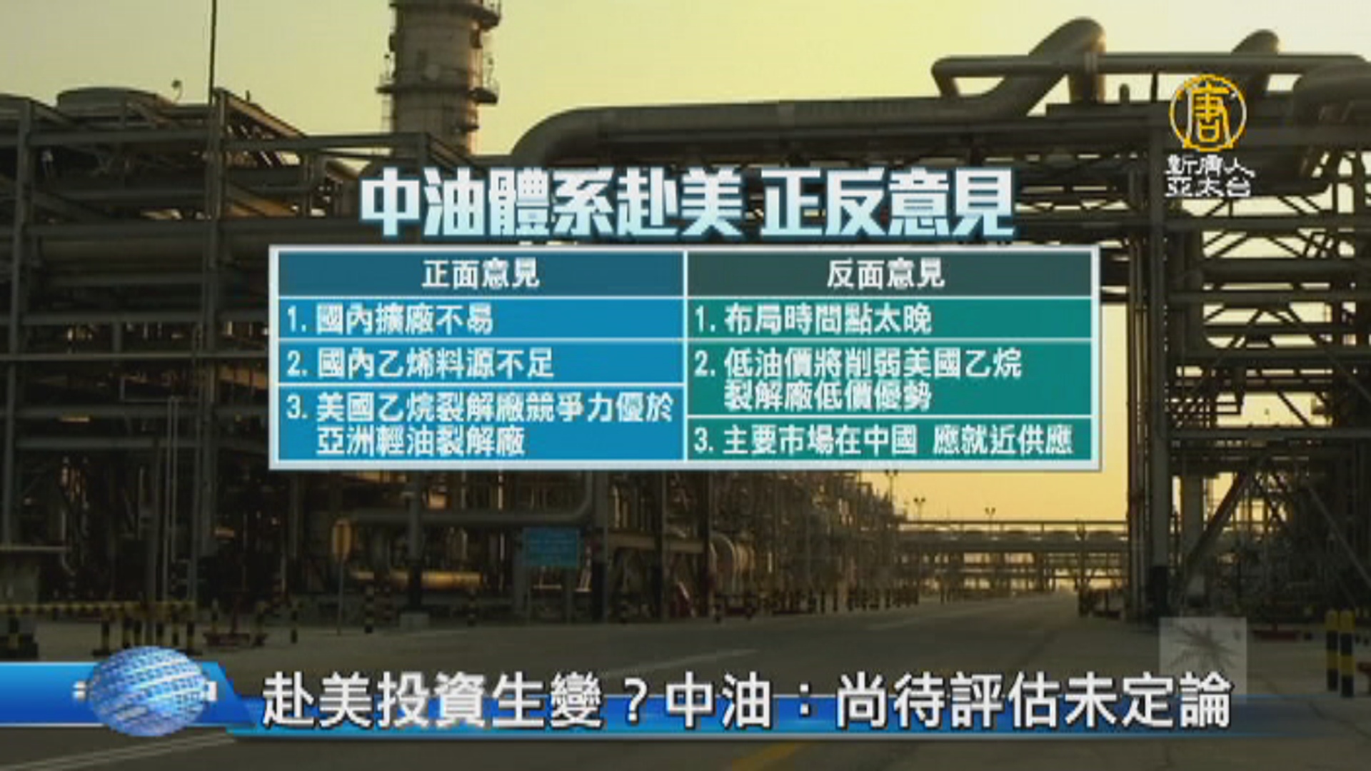【新唐人亞太台 2017 年 05 月 08 日訊】美國投資話題成為焦點,國營事業「中油」,傳出下一步,將前往美國採購頁岩氣,不過部分中下游廠商業者質疑,如今前往美國錯過投資黃金期,讓中油方面陷入兩難。對此中油表示,6月將參加美國投資招商峰會,考察當地環境後,再做評估。