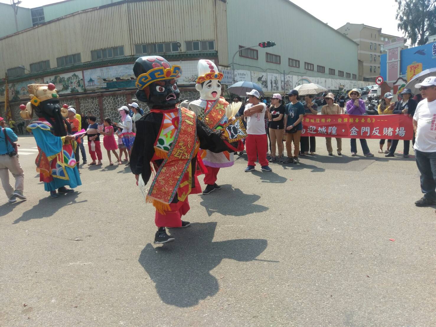 金門反賭場聯盟,在5月7日(農曆4月12日) 「金門迎城隍」繞境祈福日,舉辦迎浯島城隍爺活動,呼籲縣民「相信因果,拒絕賭害」。(圖/金門反賭聯盟提供)