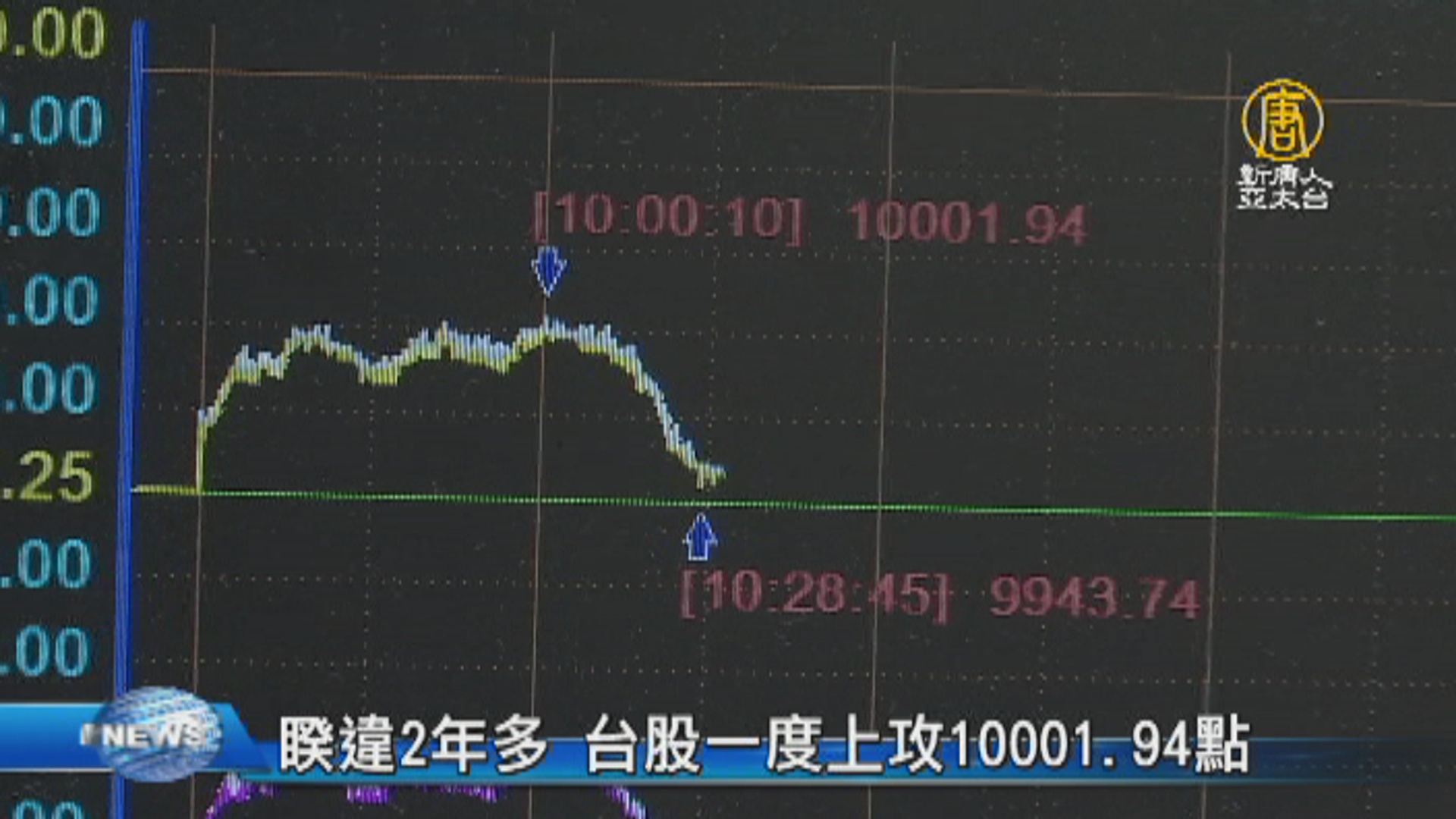 【新唐人亞太台 2017 年 05 月 09 日訊】台股在昨天外資加碼帶動下,今天重登萬點大關,主力由台積電、鴻海、大立光等大型個股帶動,上午十點一度上攻10001點,不過隨著賣壓回籠,指數迅速回落,也讓投資人喜憂參半。