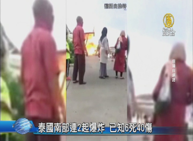 2017-05-09 18:22:21泰國南部叛亂活動頻傳的北大年市,今天(9日)下午2點左右接連發生兩起爆炸,目前已知至少造成6人死亡、至少40人受傷。