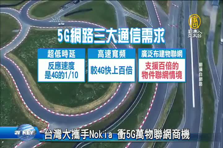 【新唐人亞太台 2017 年 05 月 09 日訊】次世代高速聯網技術5G,現在是越來越受到矚目。今天國內電信業者台灣大哥大,與Nokia宣布合作建置5G設備,業者並宣布,最快年底前完成全台的NB-IoT網路布建,為5G上路進行暖身。