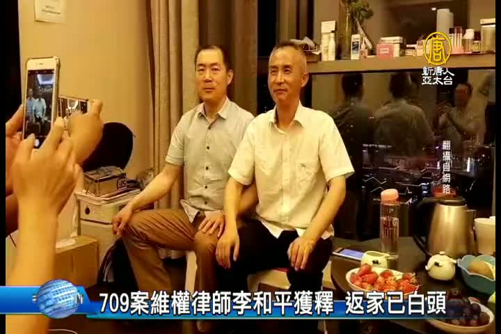 【新唐人亞太台 2017 年 05 月 10 日訊】中國著名維權律師李和平,在被關押了600多天之後,昨天下午突然被國保警察送回北京的家中。家屬事先沒有接到任何通知, 從親友在網上發出的照片看, 李和平明顯消瘦,頭髮全部變白。2015年,中共大規模抓捕維權律師和維權人士,俗稱「709案」。李和平也被捕,後被判刑3年,緩刑4年,剝奪政治權利4年。李和平的妻子表示,還不清楚丈夫目前的健康狀況,也不知道他的行動自由是否會受到限制。