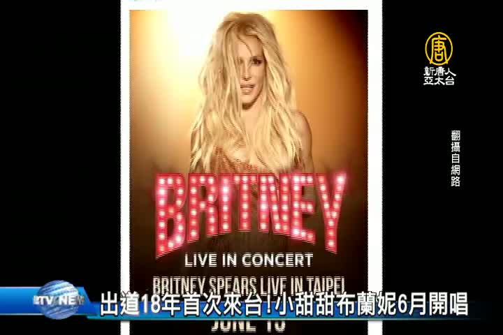 【新唐人亞太台 2017 年 05 月 11 日訊】出道18年的小甜甜布蘭妮今年終於要來到台灣辦演唱會了,她將於6月13日在南港展覽館開唱。從童星晉身美國流行歌天后、發行8張專輯、拿下8座告示牌音樂獎的小甜甜布蘭妮,今天在臉書發文表示,對於即將在台北第一次表演感到很興奮,還附上一顆愛心貼圖。