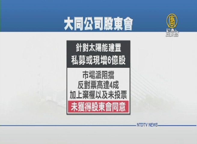 【新唐人亞太台 2017 年 05 月 11 日訊】繼續來看到,大同公司股東常會,今天登場,在會議開始,市場派就不斷提出程序問題,台上台下吵翻天,由公司派提名的董事順利當選,但大同公司提出的6億股私募案,遭市場派反撲,未能通過,大同公司發表聲明,表示遺憾。