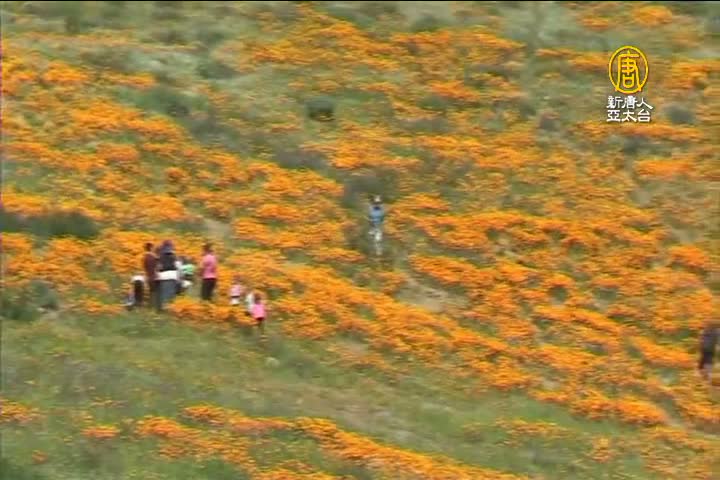 今年冬天,加州的天氣,呈現罕見的多雨型態,土地得到了滿滿的滋潤。春天一到就百花爭艷,色彩鮮艷的花朵一齊開放,為加州披上了一件美麗的外衣。這些花朵中,絕大部分是橙色的加州罌粟花。據國家公園管理局介紹,冬天的大量降水為春天的百花齊放創造了絕好的條件,讓成片的野花能夠盡情綻放,從而形成難得一見的「超級花海」,蔚為奇觀。