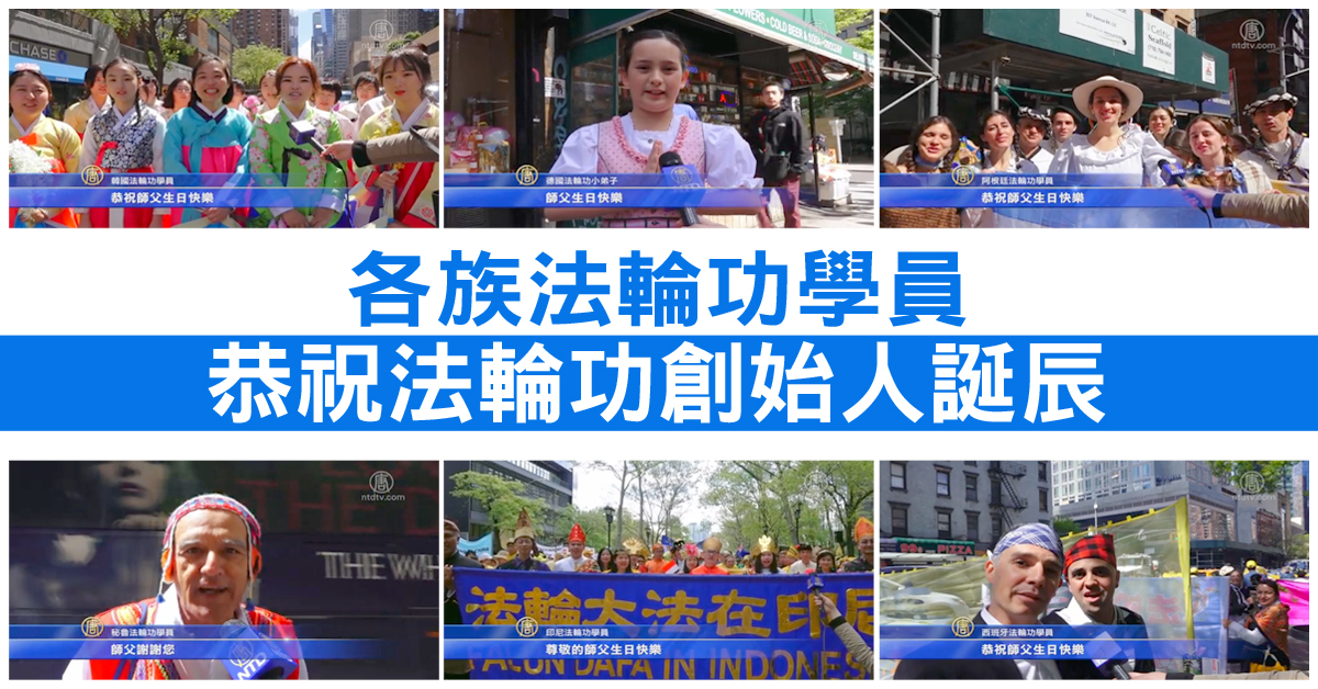 【新唐人亞太台 2017 年 05 月 13 日訊】再來看到,來自世界各地的法輪功學員,慶賀「世界法輪大法日」的同時,也對李洪志先生,表達生日祝賀。