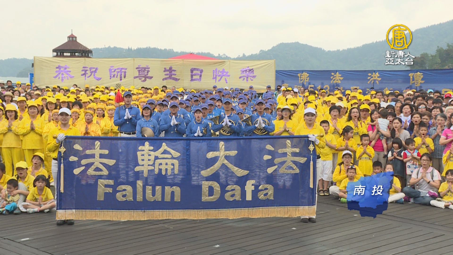 800多位台灣中部法輪功學員齊聚日月潭,敬祝法輪功創始人李洪志先生生日快樂。