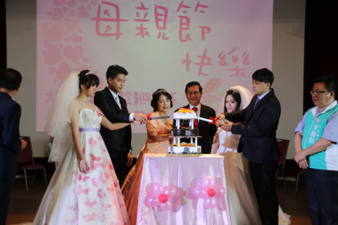 【新唐人亞太台 2017 年 05 月 14 日訊】別具創意的校園專題婚禮成果展,14日上午在大同技術學院舉行。嘉義市長涂醒哲與夫人鄭玉娟受邀客串新人的父母,與2對新人一起走紅毯,度過一個特別的母親節。
