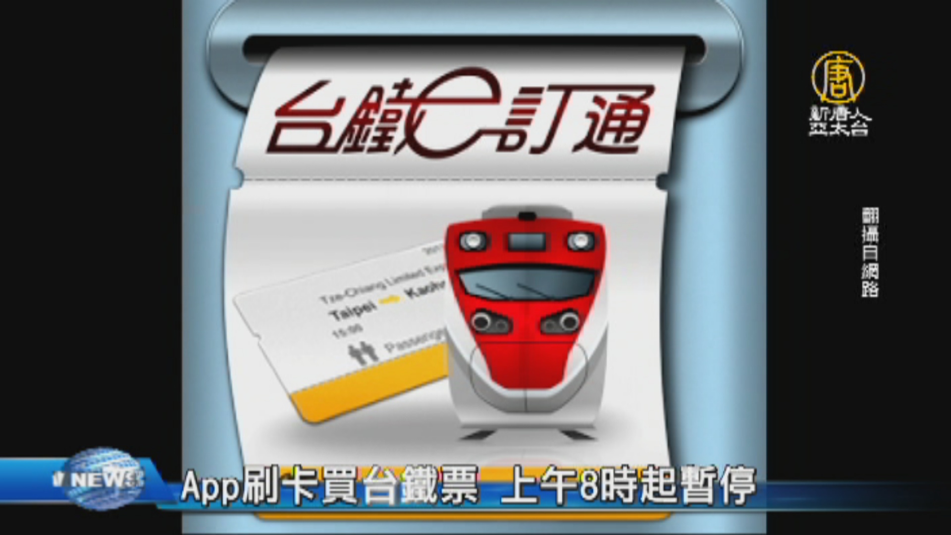 【新唐人亞太台 2017 年 05 月 15 日訊】台鐵局e訂通App,今天將進行程式更新,今天上午8點開始,將無法透過App使用刷卡功能;其餘功能可繼續使用。台鐵局表示,如果有付款需求的人,請到網站付款網頁,或車站售票窗口辦理。
