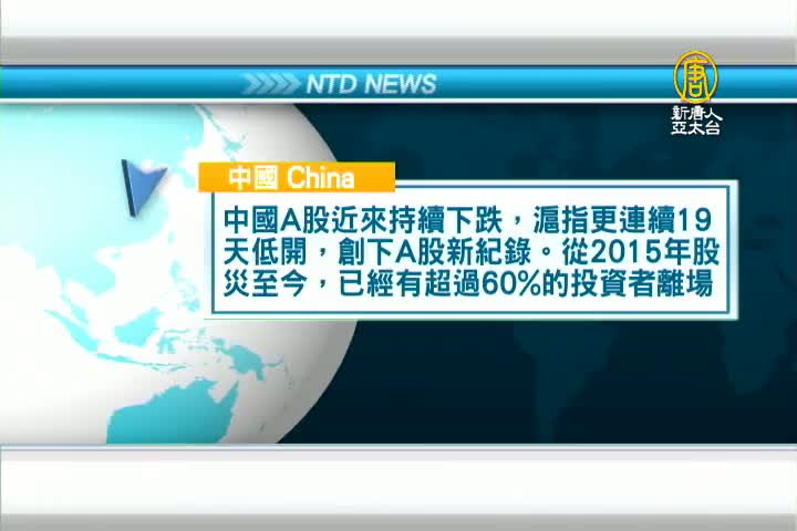 中國A股近來持續下跌,滬指更連續19天低開,創下A股新紀錄。從2015年股災至今,已經有超過60%的投資者離場。