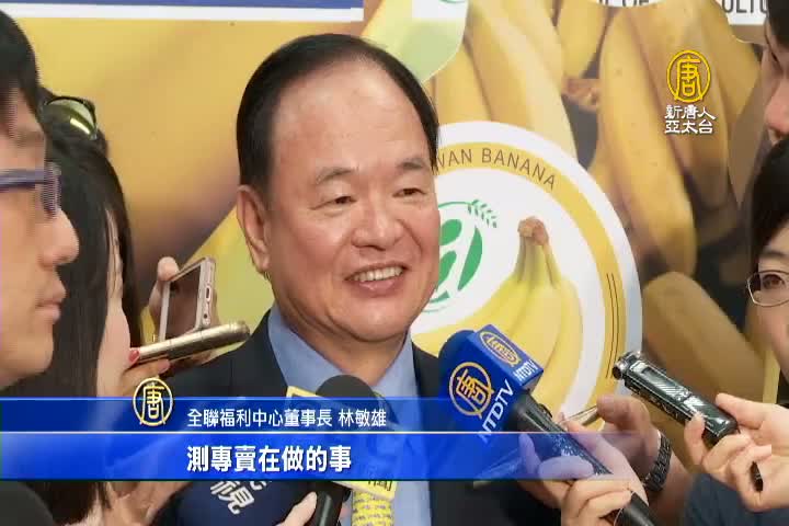 【新唐人亞太台 2017 年 05 月 18 日訊】為推廣台灣香蕉,農委會和全聯福利中心,今天(18日)攜手銷售台灣香蕉,除了台灣香蕉,媒體也關注全聯市業的布局,對於先前傳出將進軍藥局市場,董事長林敏雄表示,還在嘗試,目前只有1、2家。