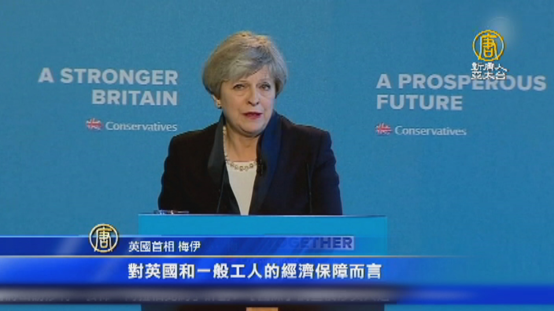 【新唐人亞太台 2017 年 05 月 19 日訊】英國將於下個月8號舉行大選,首相梅伊週四公佈執政保守黨的競選大綱,她表示,將有選擇性的干預市場、放鬆財政政策,進一步削減福利,幫助英國渡過脫歐進程。