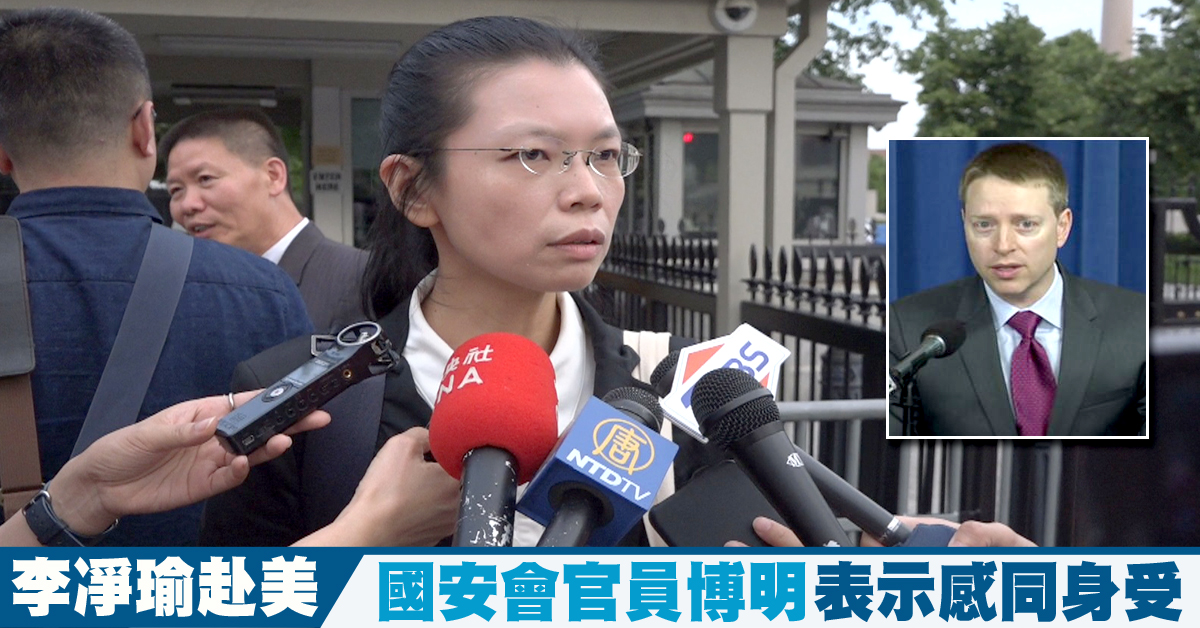 這一次李凈瑜與中國維權律師江天勇、謝陽、唐荊陵的妻子,對華援助協會會長傅希秋、台灣關懷中國人權聯盟理事長楊憲宏一行人,在19日下午4時左右進入白宮會晤博明、國安會中國事務主任Leah Bray等4名官員,進行近2個小時的會談。