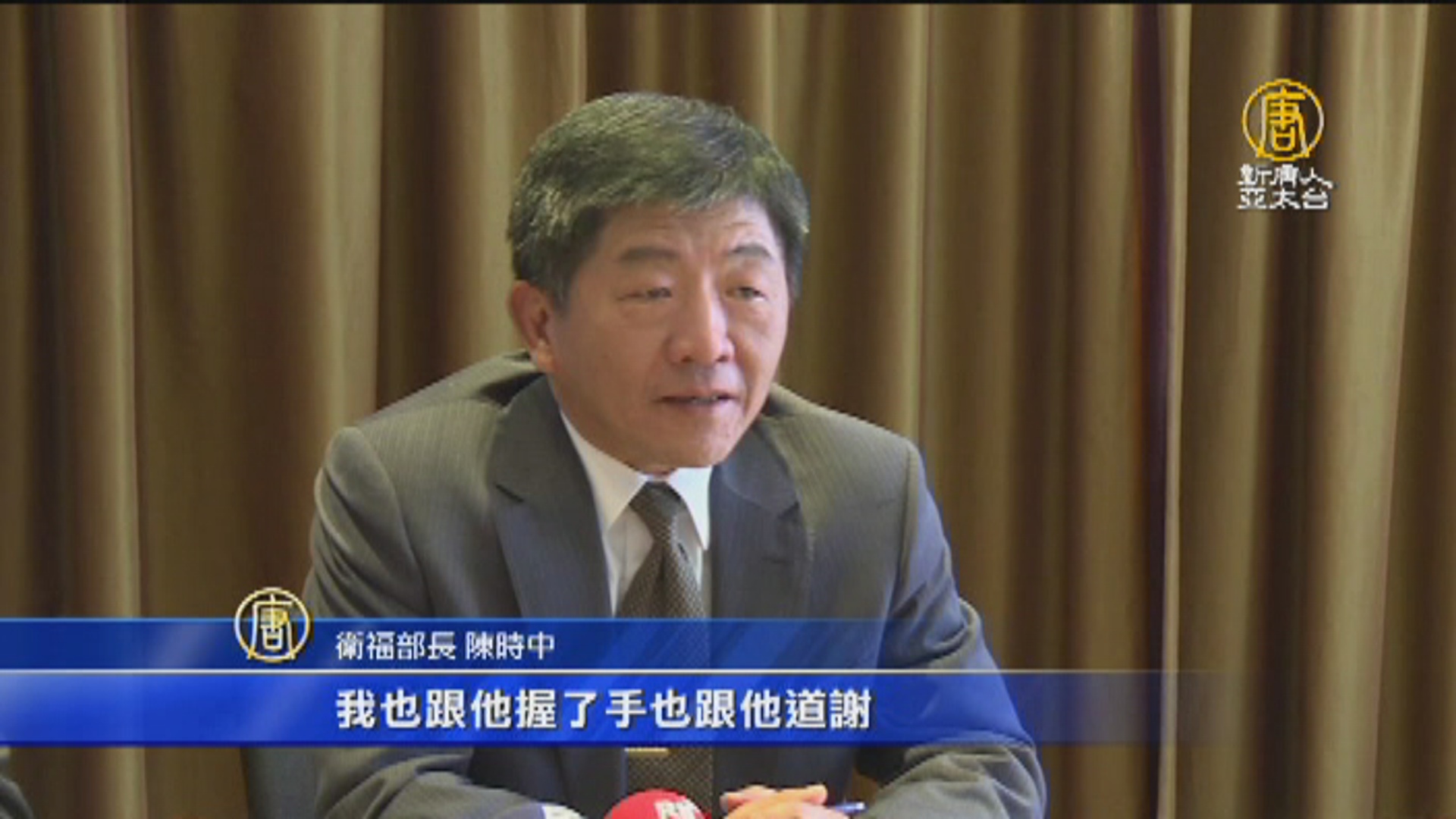 衛福部長 陳時中:「我也跟他握了手也跟他道謝,也跟他照了一張相那也是覺得,反正禮多人不怪,能夠開始建立一些關係,所以後來今天(24日)又給他送了巧克力去的樣子,還是花 讓那個代表處他們去,讓瓦處這邊去決定,就跟他恭喜說我來自台灣,給他一張名片,那希望以後有機會參加WHA,請你多多支持,他說他知道。」