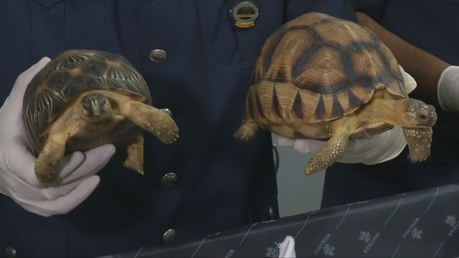 「我們在檢查行李箱中發現5隻安哥洛卡象龜及325隻印度星龜,價值約27.7萬美元。」