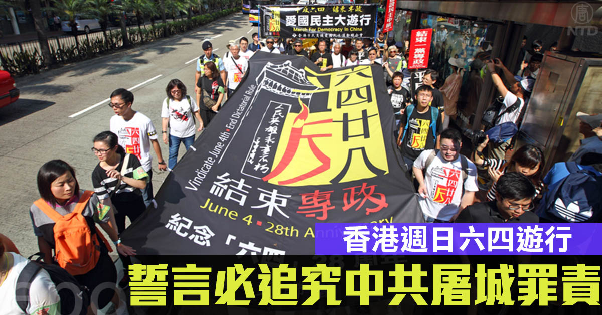 【新唐人亞太台 2017 年 05 月 29 日訊】歡迎回來,新聞焦點,來到香港,再過幾天,就是六四天安門屠城紀念日,香港支聯會週日舉行六四愛國大遊行,遊行人士表示,必定追究中共屠城罪責。