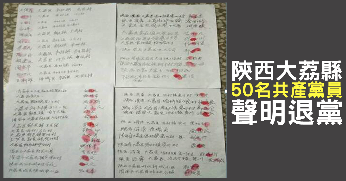 陝西大荔縣五十名共產黨員聲明退黨