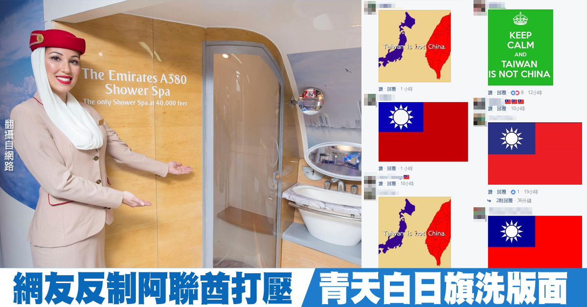 【新唐人亞太台 2017 年 05 月 31 日訊】再來看到,台灣又被吃豆腐了嗎?阿聯酋航空遭網友踢爆,為了爭取中國市場,竟然要求台籍空姐執勤時,不只要拿掉青天白日的國旗胸章,還得改掛上中共五星旗,消息傳出後,阿聯酋臉書粉絲頁,被網友灌爆,許多民眾狂貼中華民國國旗洗版抗議。晚間,阿聯酋航空發布最新聲明表示,該封信件「是個錯誤」已經收回,未來,所有機組員不須再配帶國旗胸針。