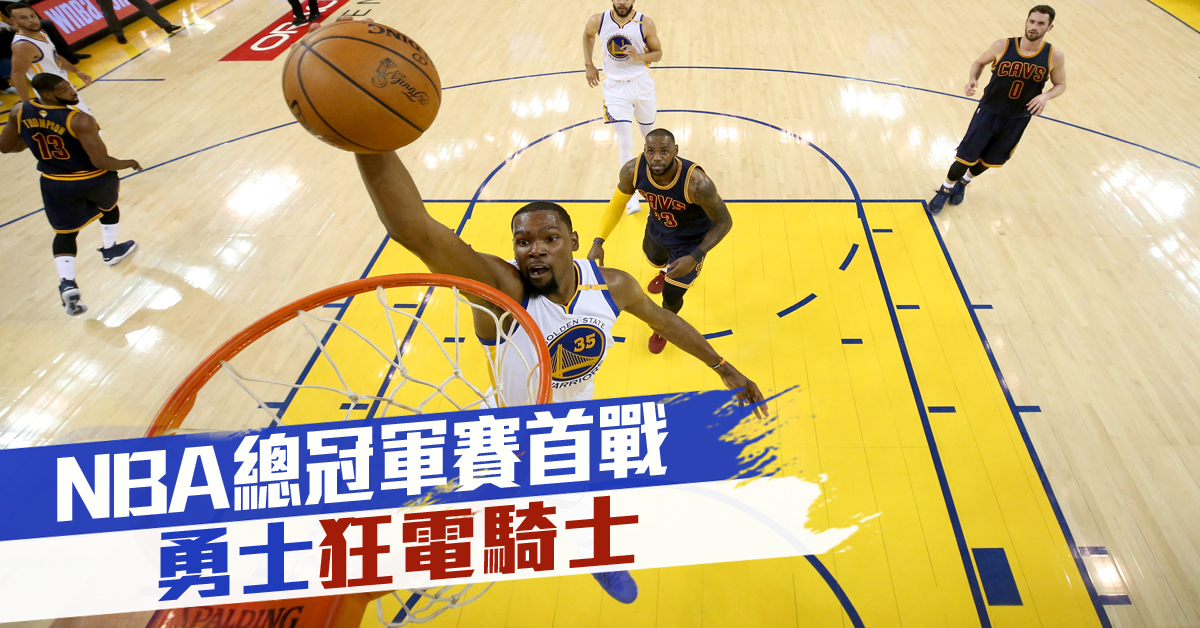 NBA總冠軍賽首場在勇士隊主場甲骨文球場開戰,連續第3季上演 騎士與勇士的「雙士對決」,騎士雖是衛冕冠軍,但國際賭盤與美國媒體一致看好勇士能夠復仇成功,首戰,勇士隊的杜蘭特與柯瑞 兩人合力攻下66分,終場以113比91,電爆騎士隊。