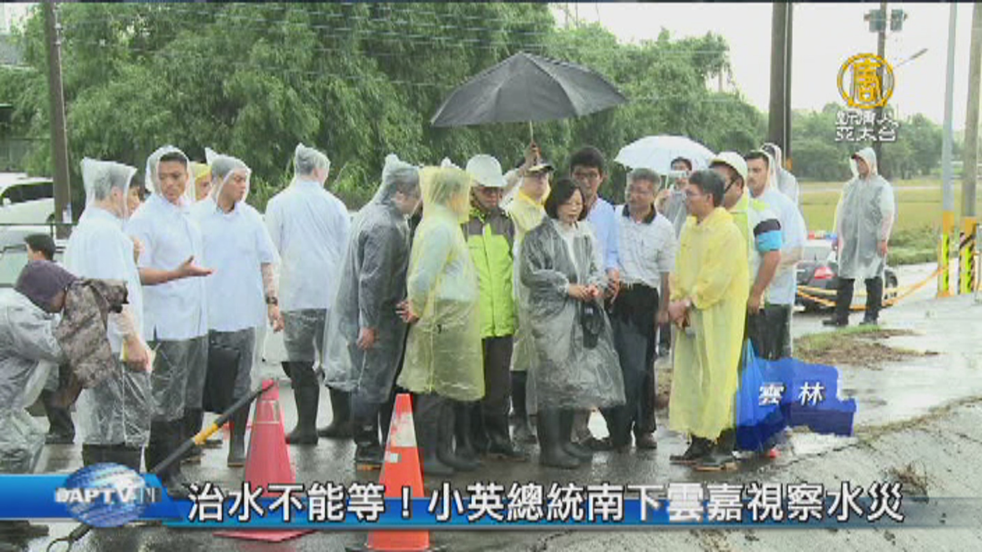 【新唐人亞太台 2017 年 06 月 04 日訊】連日豪雨成災,雲林也是重災區之一,總統蔡英文今天(4日)南下雲嘉視察災情,強調治水不能等!要用前瞻計畫加把勁,中央地方協力合作,不足的治水經費就由前瞻補足,趕快完成。
