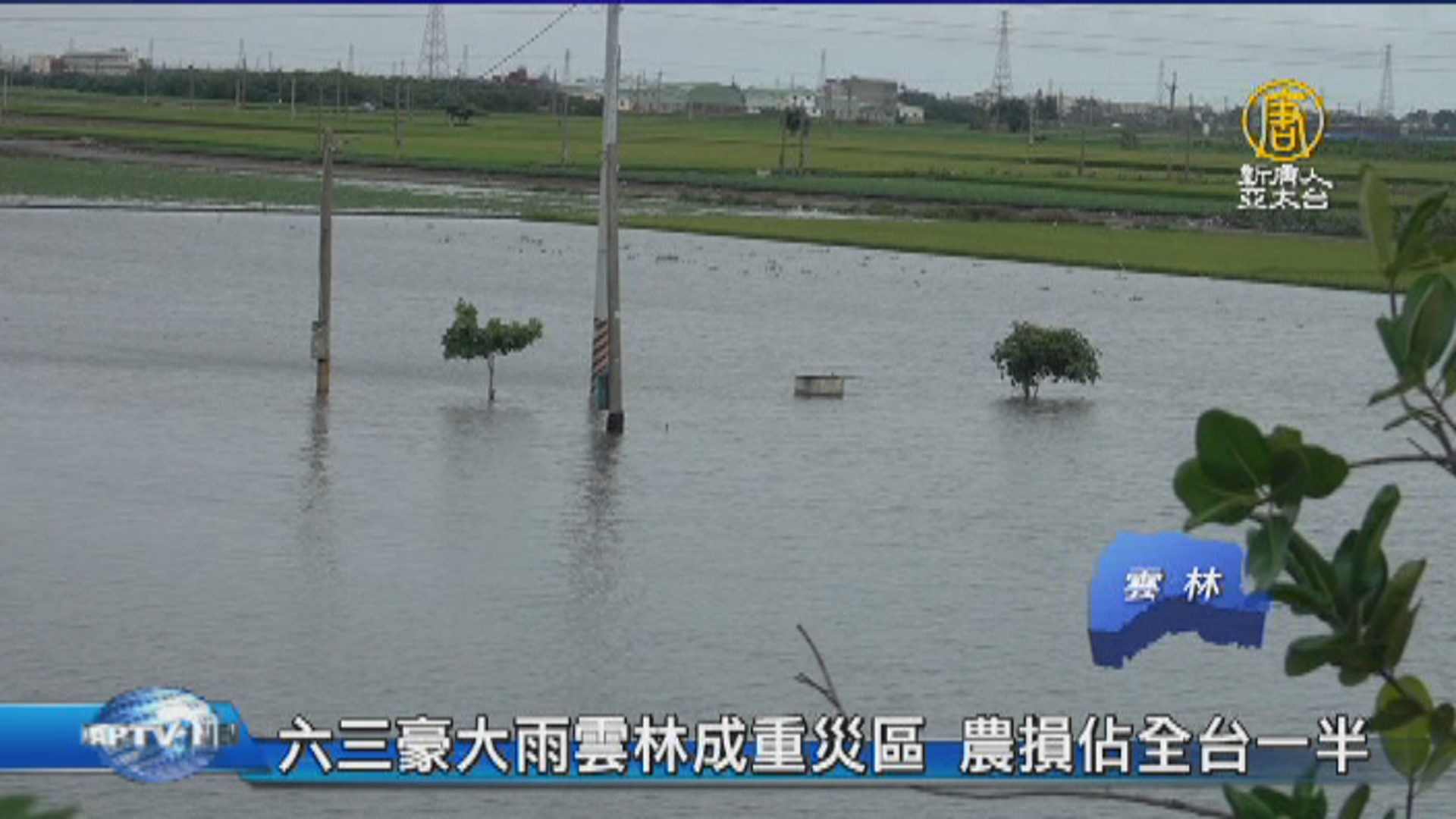 【新唐人亞太台 2017 年 06 月 04 日訊】歡迎回來。昨天中南部豪雨成災,全台農損的最新統計,截至傍晚5點,攀升到5752萬元,其中雲林縣受災最嚴重,農作物及畜產損害統計,達到2421萬元,佔了全台42%,將近一半,雲林各鄉鎮,都傳出嚴重的淹水災情。