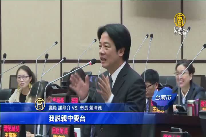 【新唐人亞太台 2017 年 06 月 08 日訊】再來看到,台南市長賴清德一席,親中愛台的說法,今天上午,持續在台南市議會裏發酵,只見國民黨籍議員謝龍介,和市長賴清德你一言,我一語,謝龍介甚至還跑到賴清德身旁,近身質詢,雙方你來我往,互不相讓。