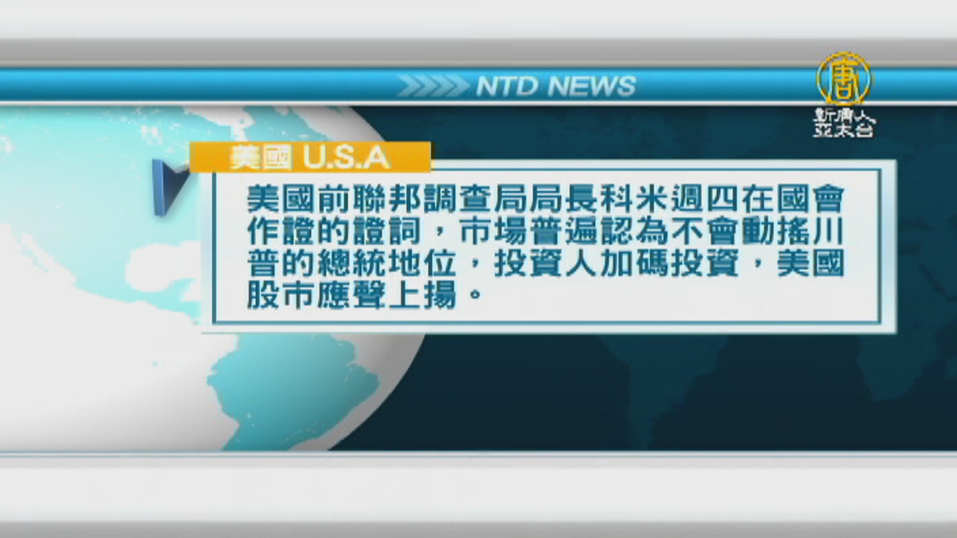 美國前聯邦調查局局長科米週四在國會作證的證詞,市場普遍認為不會動搖川普的總統地位,投資人加碼投資,美國股市應聲上揚。