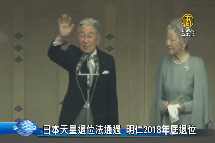 【新唐人亞太台 2017 年 06 月 09 日訊】日本參議院今天上午,通過「天皇退位特例法」, 明仁天皇可望在明年底退位,2019的年元旦更換新年號。退位後的天皇,稱號 為「上皇」,皇妃為「上皇后」,內閣官房長官 菅義偉表示,特例法將成為一個先例。為了安定確保日本皇位的繼承,特例法實施後,日本政府也將持續檢討讓女性皇族在婚後能保留皇籍的事宜。