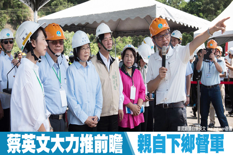 蔡英文下台南,從早到晚,視察水利、文化與長照,市長賴清德與多名黨籍立委、部會首長陪同。蔡英文親自督軍,就是希望前瞻計畫順利闖關。