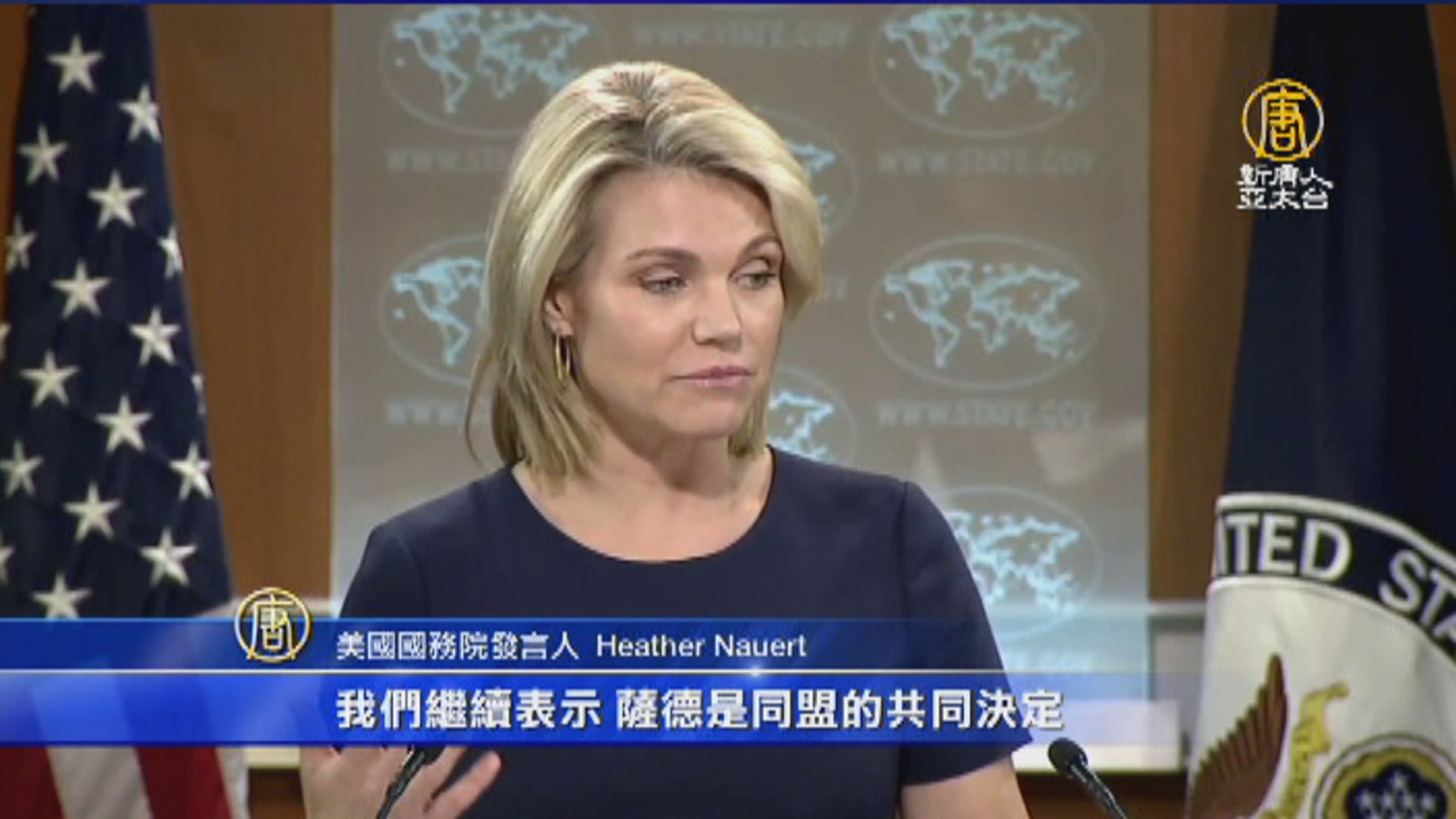 美國國務院發言人 Heather Nauert: 「我們關注到了新的薩德發射器被暫停。我們繼續表示﹐薩德是同盟的共同決定。我們繼續和韓國在這一過程中合作。」