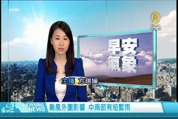 【新唐人亞太台 2017 年 06 月 12 日訊】歡迎您收看6月12日的早安新唐人,我是方琪媛。先來帶您關心今天的天氣情況。今天受到南邊颱風的外圍雲系影響,中南部可能有短暫陣雨,沿海地區也要注意長浪,而各地都會有午後雷陣雨,溫度方面,高溫仍在31到34度之間,提醒民眾,外出要多補充水分,預防中暑,東南部則有焚風出現機率。帶您一起來看到國際媒體重要訊息。