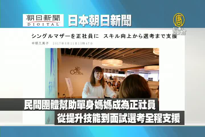 【新唐人亞太台 2017 年 06 月 12 日訊】來看到日本朝日新聞:日本民間團體,幫助單身媽媽成為正式社員,從提升技能到面試選考全程支援。