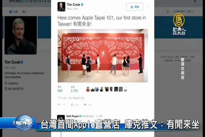 【新唐人亞太台 2017 年 06 月 12 日訊】財經消息,帶您看到,台灣第一間蘋果專賣店Apple Store來了,蘋果官方11日正式在官網公布,地點就設在101大樓百貨內,初估占地400坪,約占一樓面積的七分之一。工程牆面找來台灣頗有知名度的剪紙達人楊士毅操刀,進行整個牆面的設計,相當具有台灣特色。蘋果執行長庫克也在推特發文,介紹台灣第一家蘋果直營店,文末還用繁體中文寫出「有閒來坐」,近似歡迎大家光臨的台語念法。也引發網友留言討論。