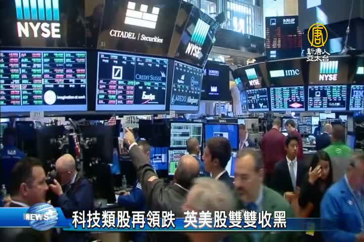 【新唐人亞太台 2017 年 06 月 13 日訊】再來關心市場消息,科技股再度領頭下跌,讓美國股市周一收低。那斯達克指數,創下自去年 12 月以來,連二天最大跌幅。其他大型科技股股價,則隨蘋果走低,亞馬遜,Alphabet,Netflix與臉書都呈現下跌。而科技股重挫,也蓋過了法國和義大利選舉結果的振奮效應,使歐股受到衝擊,歐洲股市周一也收低。英國大選過後,投資人仍趨向謹慎,等待這個禮拜的聯準會(Fed)消息。