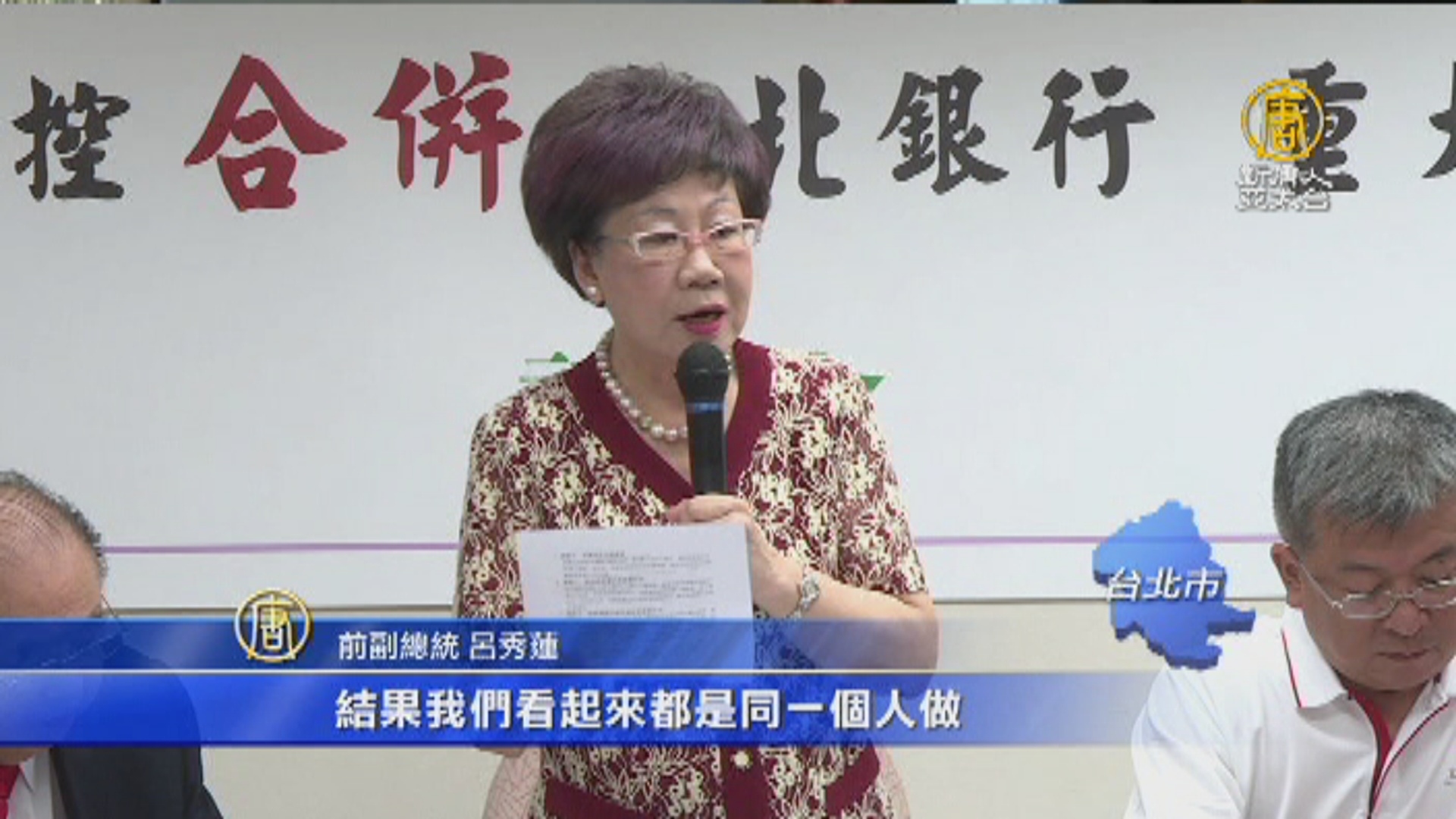 拿出當時文件,事隔15年,前副總統呂秀蓮指控富邦2002年違法併購台北銀行,當時總裁蔡萬才甚至還意圖干預總統人事任命,還批評北市府以極低價格,售出台北銀行。