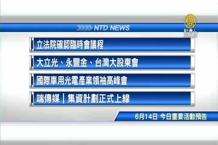立法院本會期第一次臨時會,確認議程;大立光、永豐金、台灣大哥大股東會;國際車用光電產業領袖高峰會;以及端傳媒,集資計劃正式上線。