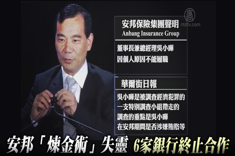 【新唐人亞太台 2017 年 06 月 16 日訊】中國金融巨鱷「安邦集團」董事長吳小暉,上週五被帶走,消息震撼大陸政商界,並且餘震不斷。據《華爾街日報》報導,吳小暉是被調查經濟犯罪的專案組帶走的。彭博社的消息稱,大陸官方已通知6家國內銀行,停止與安邦的業務往來。