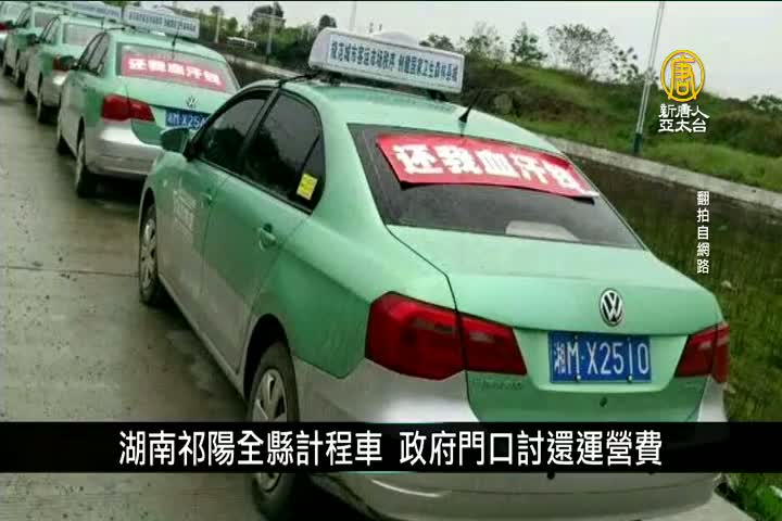 湖南祁陽全縣計程車 政府門口討還運營費|中國一分鐘