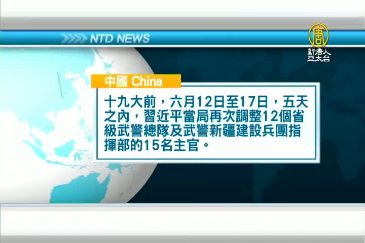 十九大前,六月12日至17日,五天之內,習近平當局再次調整12個省級武警總隊及武警新疆建設兵團指揮部的15名主官。