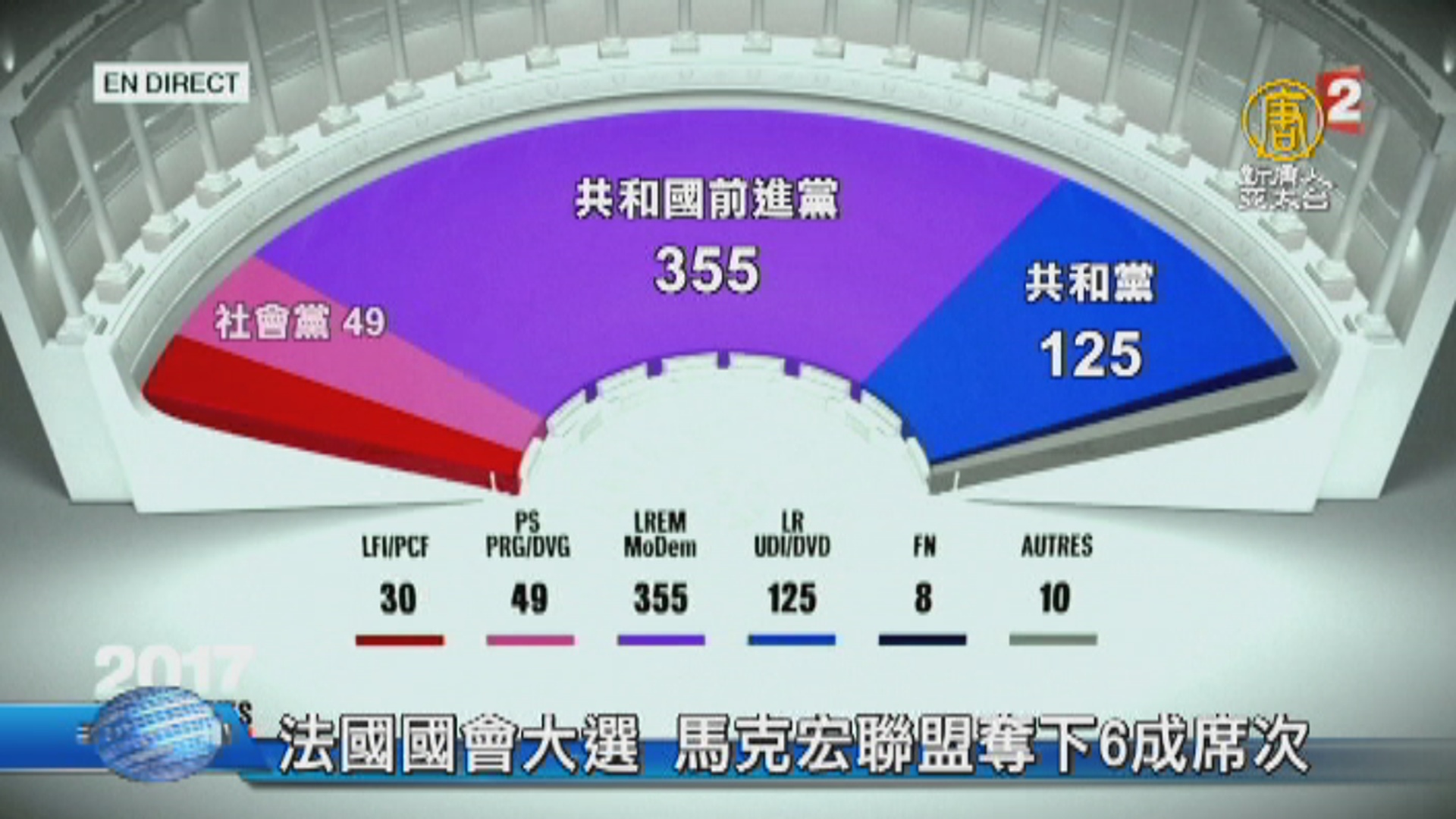 【新唐人亞太台 2017 年 06 月 19 日訊】接著關心,法國國民議會選舉第二輪投票,總統馬克宏所創的新政黨一如民調預測,大獲全勝,奪下六成席次。這也確保馬克宏,得以實施 促進經濟等 重大改革。