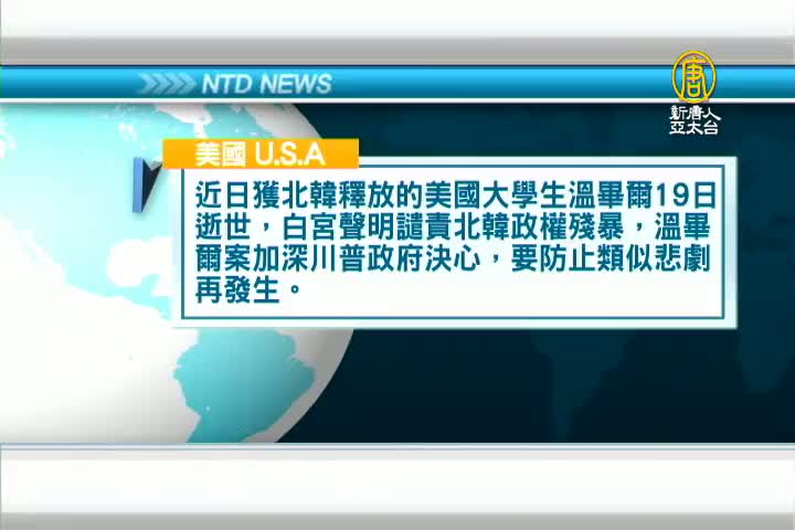 近日獲北韓釋放的美國大學生溫畢爾19日逝世,白宮聲明譴責北韓政權殘暴,溫畢爾案加深川普政府決心,要防止類似悲劇再發生。