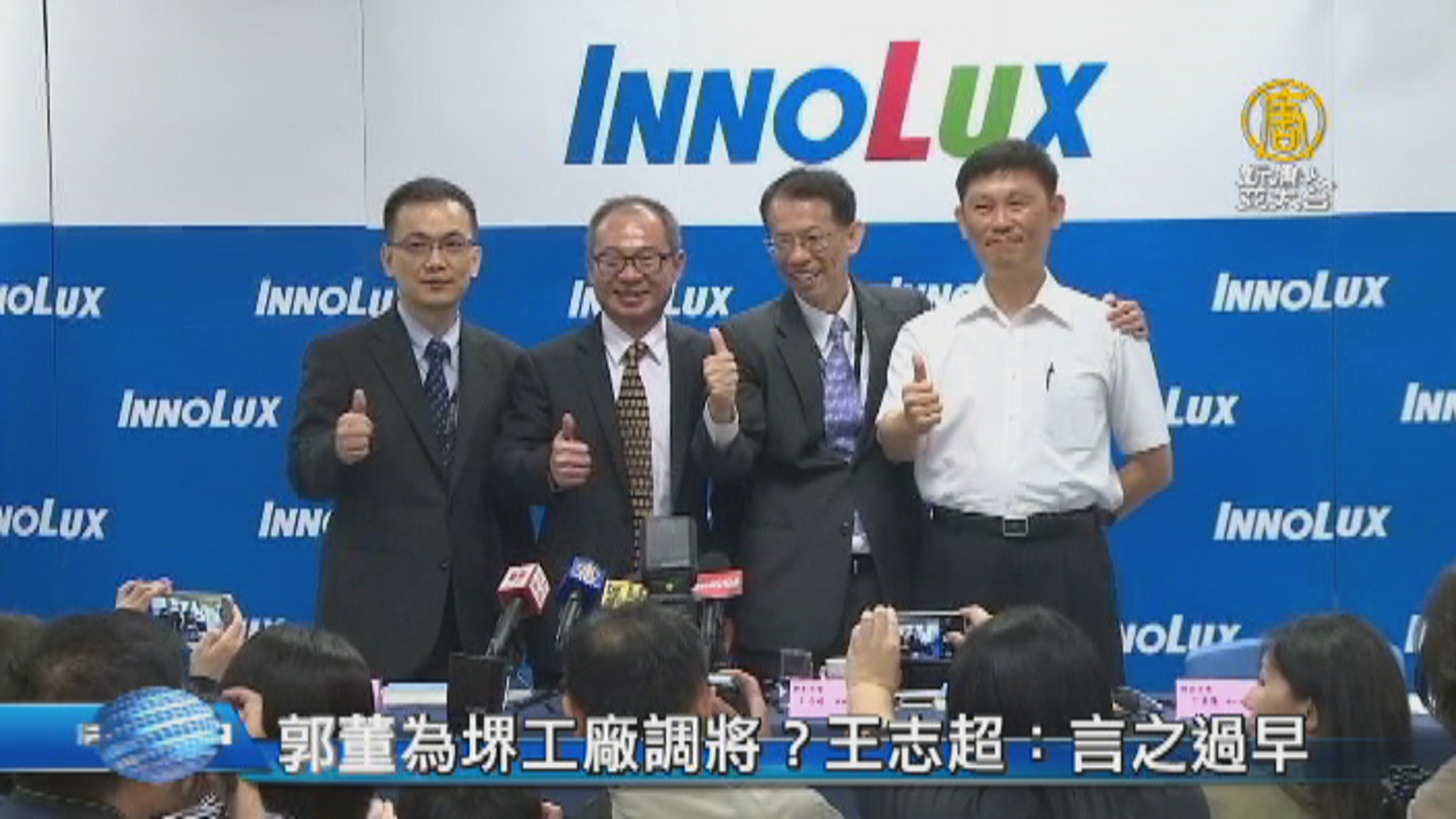 【新唐人亞太台 2017 年 06 月 20 日訊】歡迎回來。為面板事業鋪路,鴻海集團旗下日本夏普的面板10代廠SDP,與廣東政府合資的超視堺國際科技廣州,3月動土,董事長郭台銘開始大幅度調兵遣將,群創董事長王志超在今天(20日)股東會後,將轉調鴻海負責廣州10.5代廠,對此,王志超也在股東會後記者會上回應,言之過早。