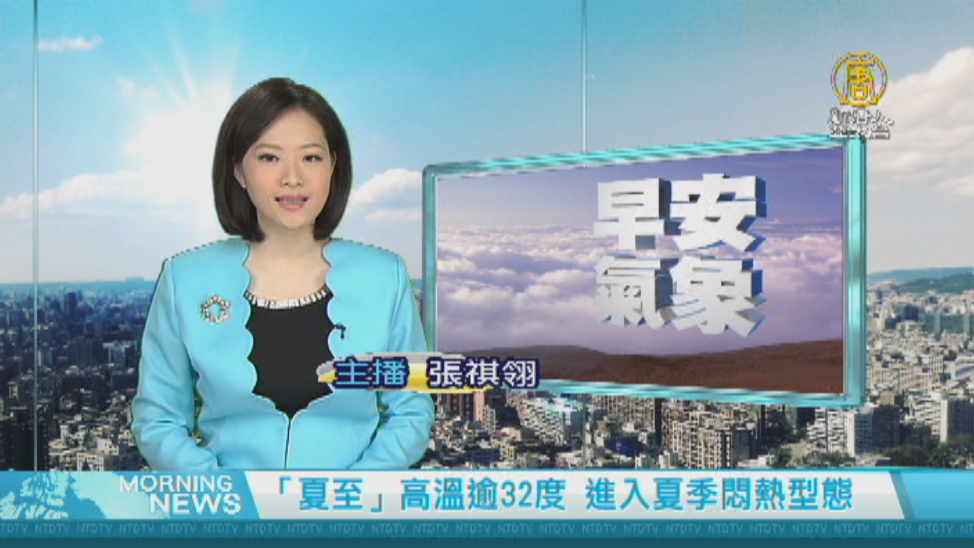 【新唐人亞太台 2017 年 06 月 21 日訊】歡迎您收看6月21日的早安新唐人,我是張祺翎。先來帶您關心今天的天氣情況。今天是夏至,真正進入夏季天氣,氣象局表示,今天白天高溫介於攝氏32到34度,局部地區有35度以上的機率,受到西南風及水氣移入的影響,北台灣上午偶而飄些雨;或出現午後雷陣雨,提醒觀眾朋友要注意防曬、多喝水。帶您一起來看到國際媒體重要訊息。