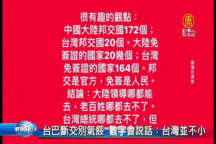 台巴斷交別氣餒 數字會說話:台灣並不小