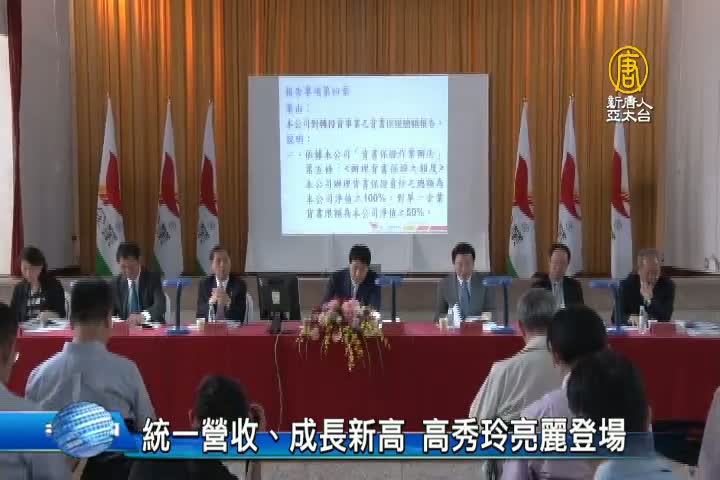 【新唐人亞太台 2017 年 06 月 21 日訊】統一企業今天也召開股東會,由董事長羅智先親自主持,不過,現場最亮麗的「嬌」點,是羅智先的妻子高秀玲,高秀玲是統一企業美麗事業董事長,主要掌管集團內美麗事業的,統一去年營收4,134 億元、稅後純益145億元,比上年度成長 3%,創下新高紀錄。股東會上也通過配發現金股利2.1元。