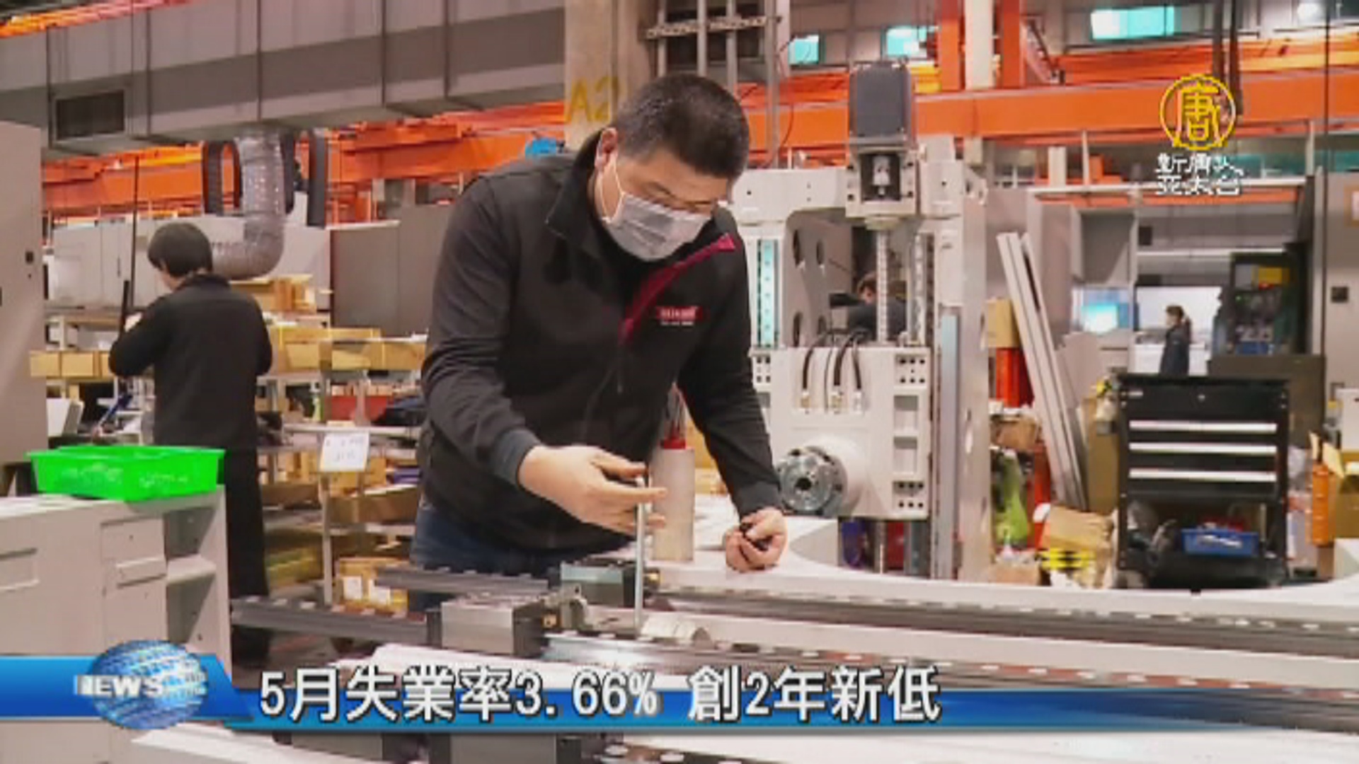 【新唐人亞太台 2017 年 06 月 22 日訊】鏡頭轉回台灣。行政院主計總處今布5月失業率為3.66%,比4月份下降0.01個百分點,去年同期下降0.18個百分點,創2年來新低。主計總處表示,從數據可以看出,就業狀況受惠於景氣復甦,因此維持穩定,但是否 有一例一休的正面效應,認為,還需要再觀察。