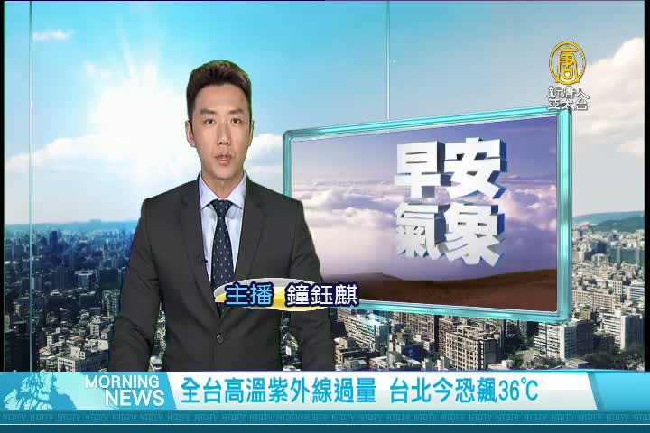【新唐人亞太台 2017 年 06 月 23 日訊】歡迎您收看6月23日的早安新唐人,我是鐘鈺麒。先來帶您關心今天的天氣情況。今天各地天氣與昨天相似,都是高溫悶熱的天氣,午後可能會下局部短暫雷陣雨,不過大多集中在山區。氣溫方面,今天各地高溫上看33度至34度。台北有機會挑戰36度!台東地區有機率出現焚風,須多補充水分。帶您一起來看到國際媒體重要訊息。